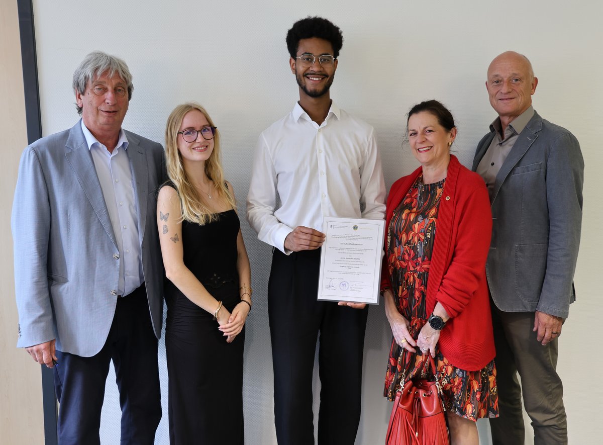 Am Montag, den 21. Juli vergaben Dr. Simone Maier, Präsidentin des Lions Club Reutlingen und der Präsident der Hochschule Reutlingen, Prof. Dr. Hendrik Brumme, das 37. Go-Out-Lions Stipendium an den Studenten Jannis Alexander Nitschke für das Wintersemester 2025/2026.