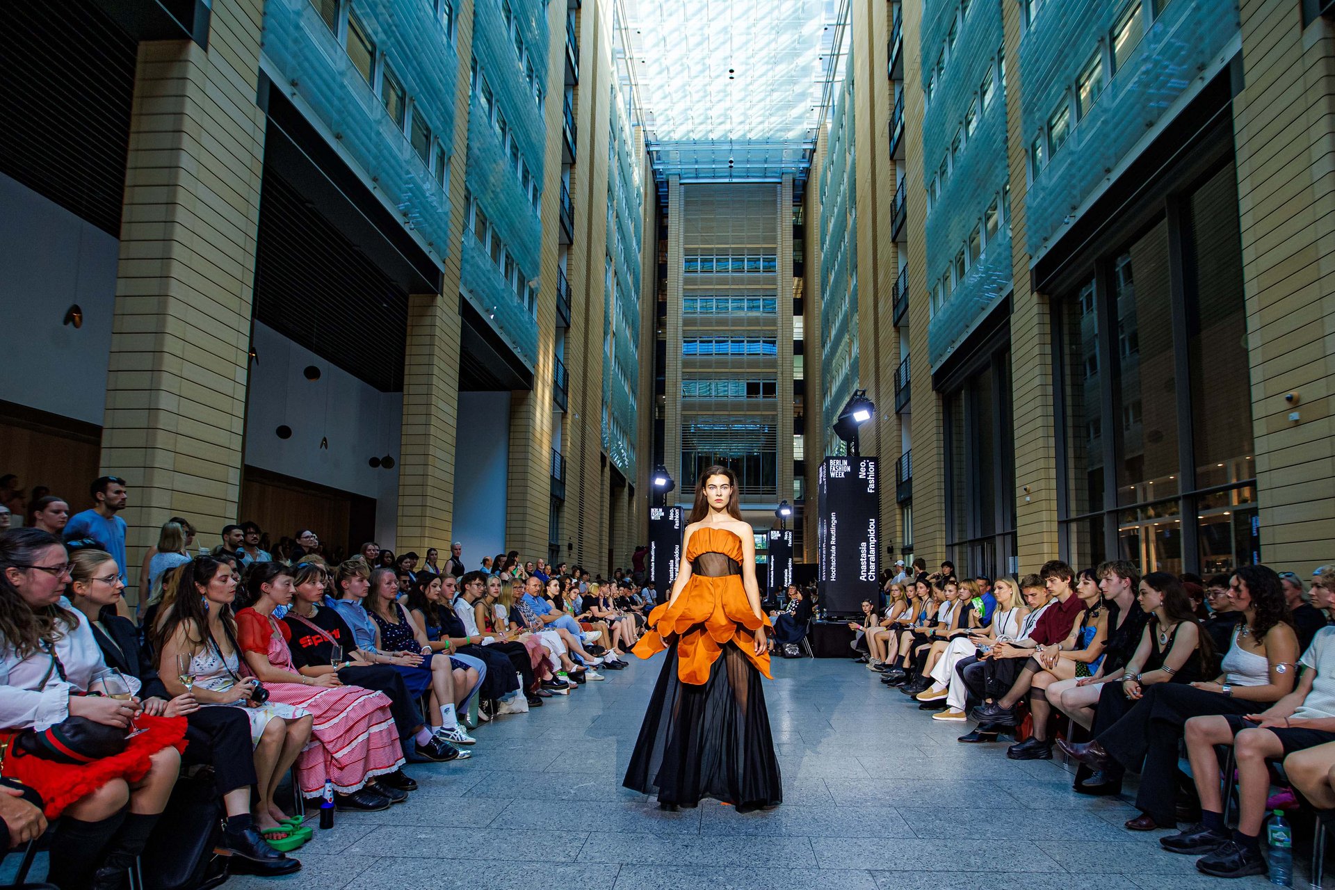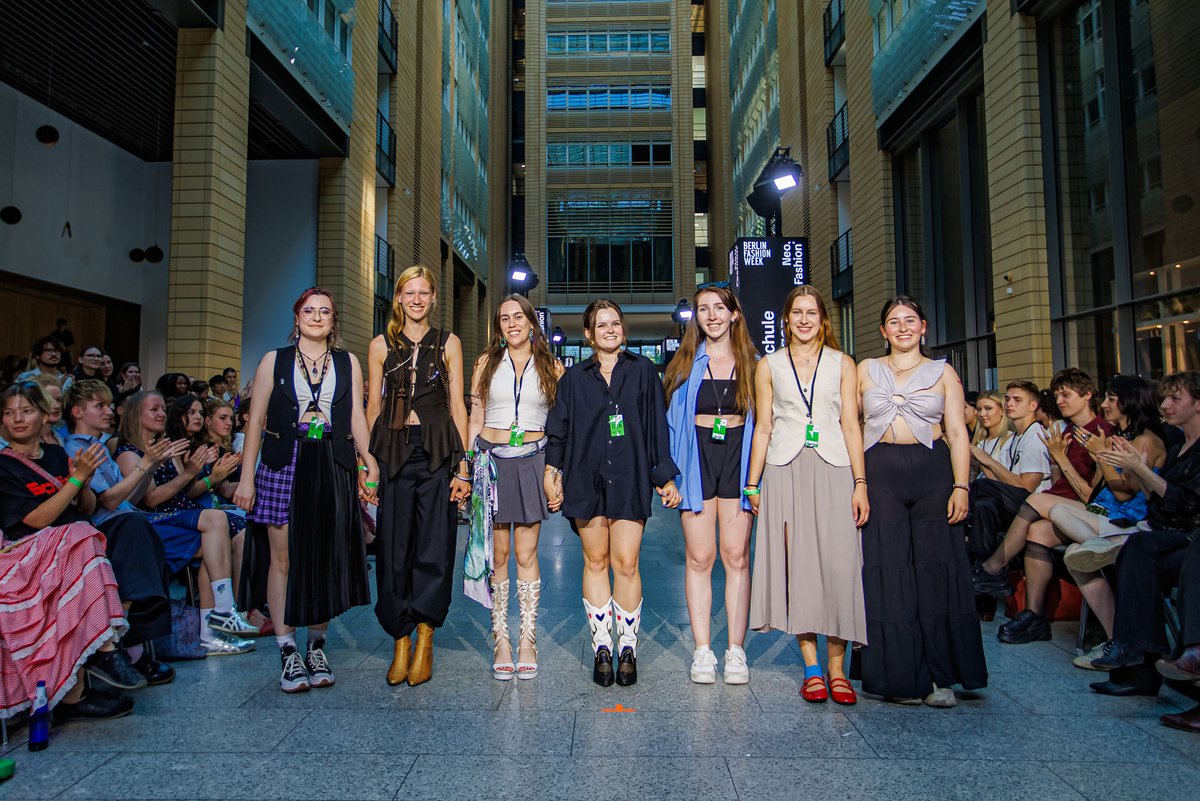 Die diesjährige Show fand erneut im Atrium Tower am Potsdamer Platz statt – einem markanten Ort im Zentrum des Berliner Kultur- und Designgeschehens. Mit seiner modernen Architektur und urbanen Atmosphäre bot der Tower eine ideale Kulisse für die progressive Energie der jungen Modetalente.