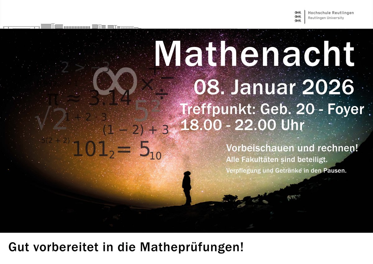 Die Mathenacht läutet die heiße Phase der Prüfungsvorbereitung ein. In der Zeit zwischen 18.00 Uhr und 22.00 Uhr stehen Ihnen dort die Grundlagen Professor:innen, Tutor:innen und die Mitarbeiter:innen der Mathewerkstatt für alle Fragen zum Thema Mathematik zur Verfügung. Rechnen mit Brüchen und Potenzen, Integral- und Differenzialrechnung oder Statistik – egal welche Matheaufgaben es sind, es kann geübt und gefragt werden.