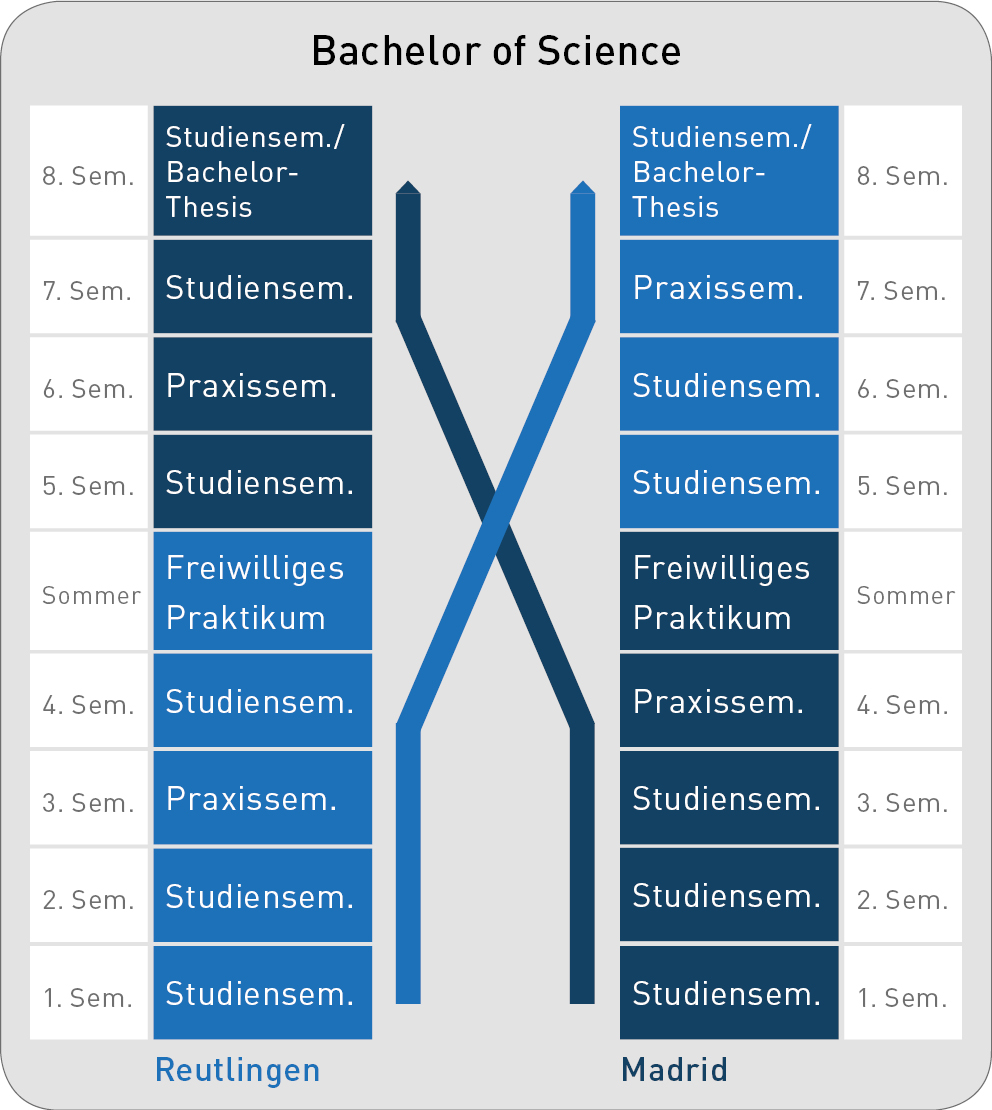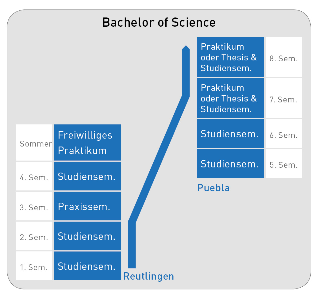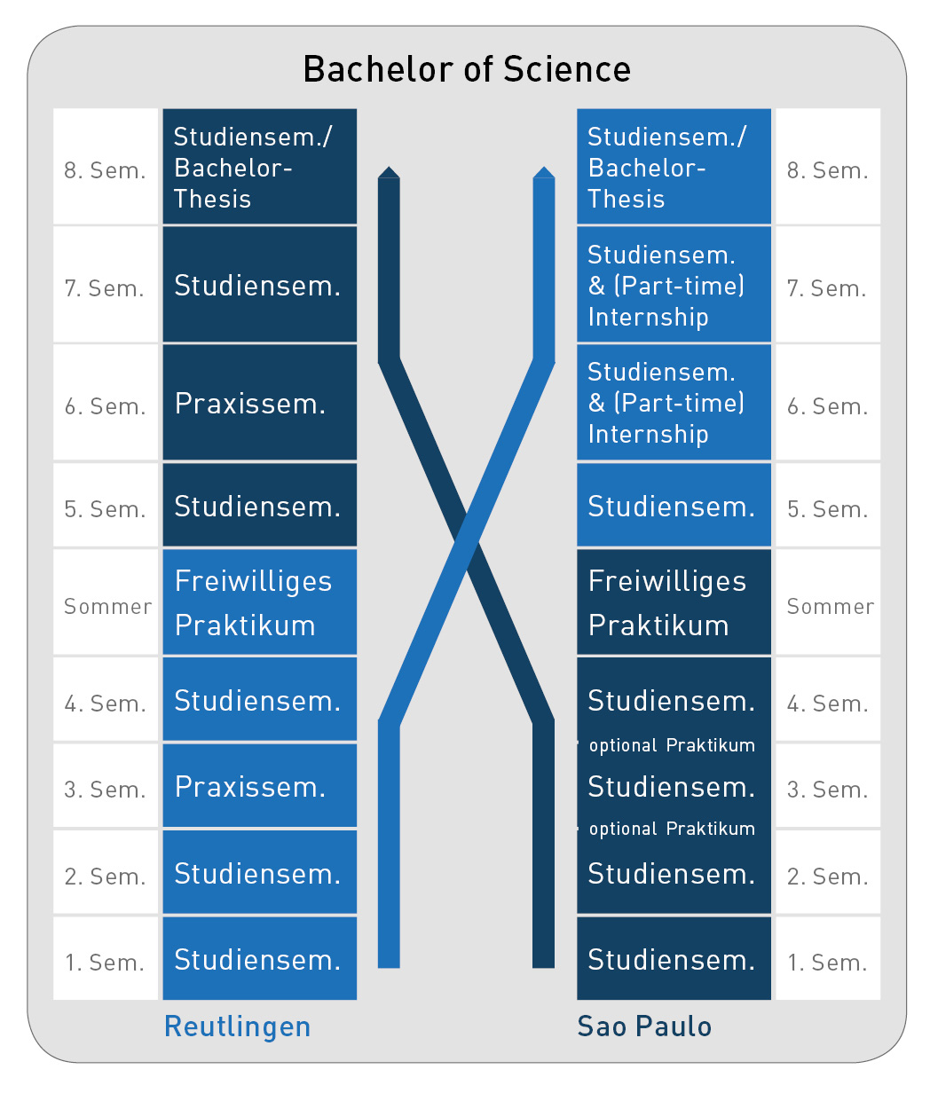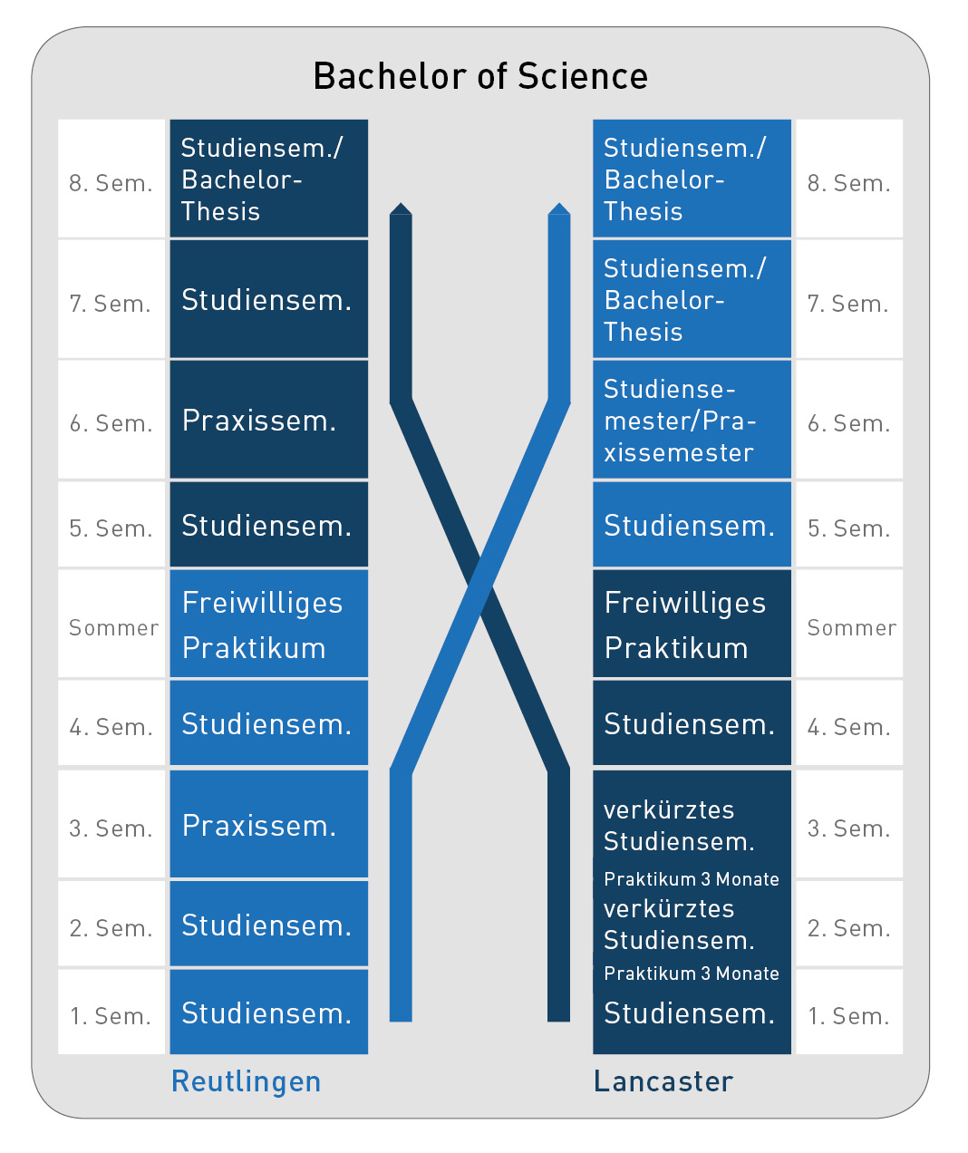 Wer in Reutlingen beginnt, absolviert im dritten Semester ein Praktikum in Deutschland und im sechsten Semester ein Praktikum in Großbritannien.