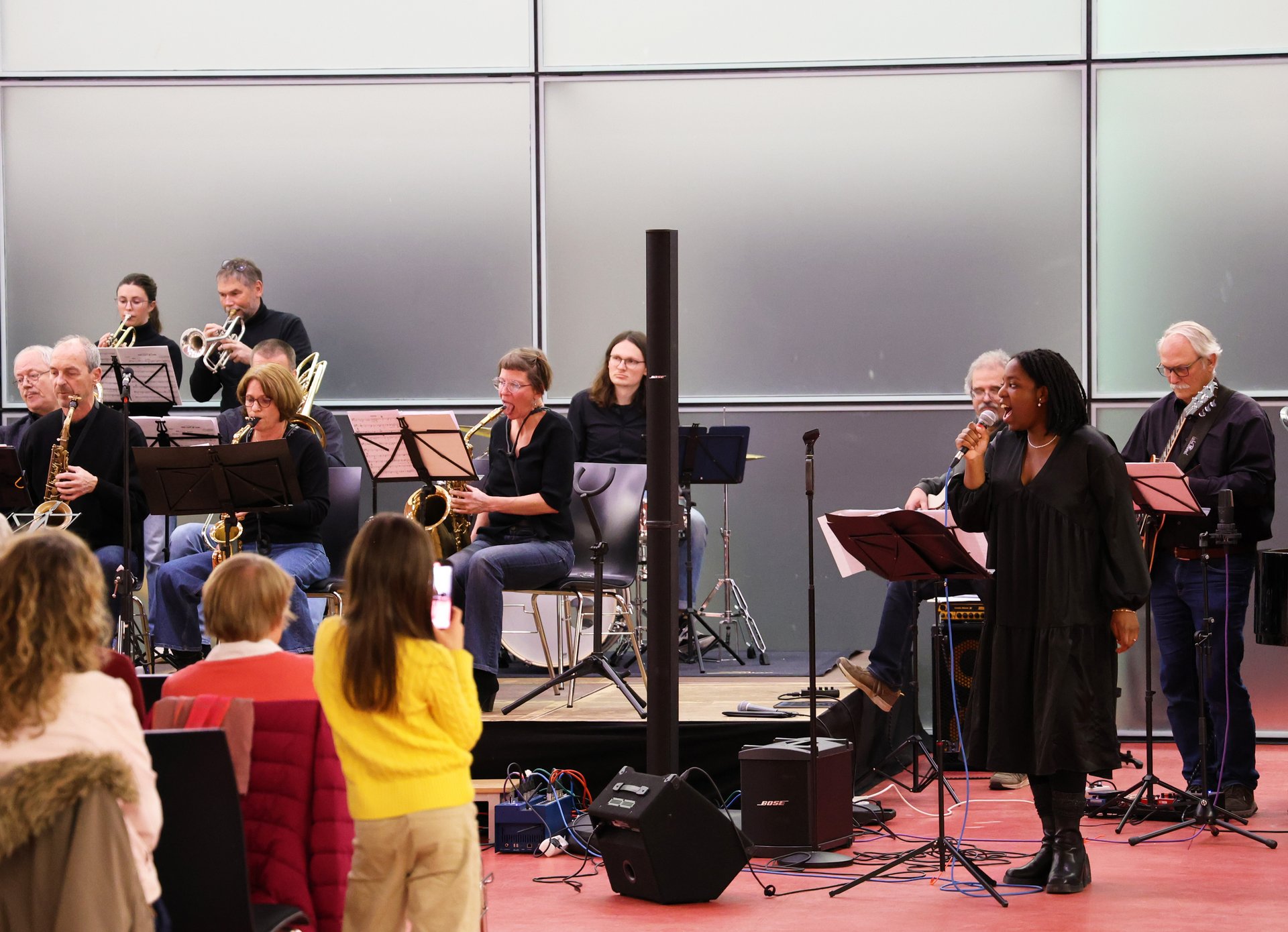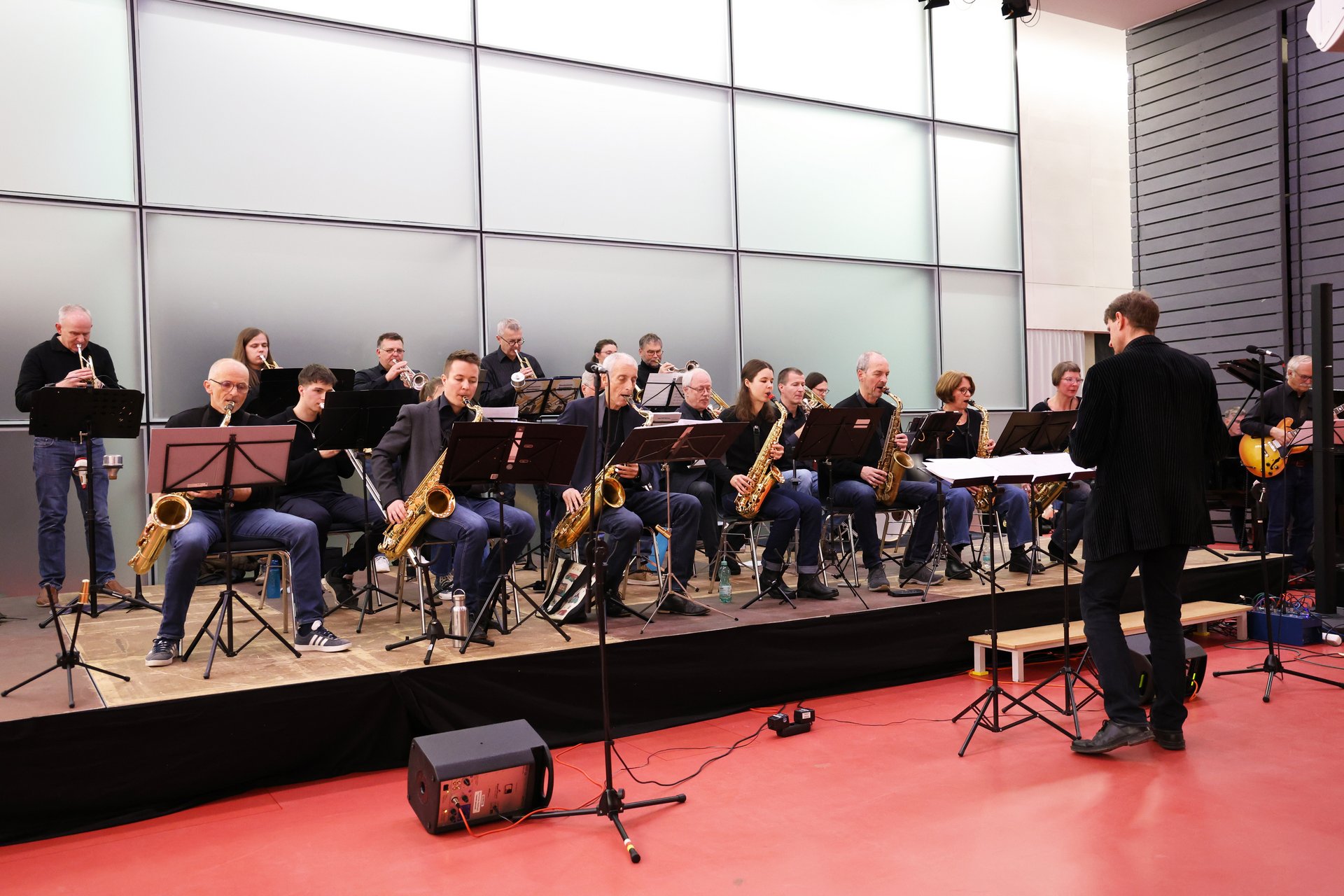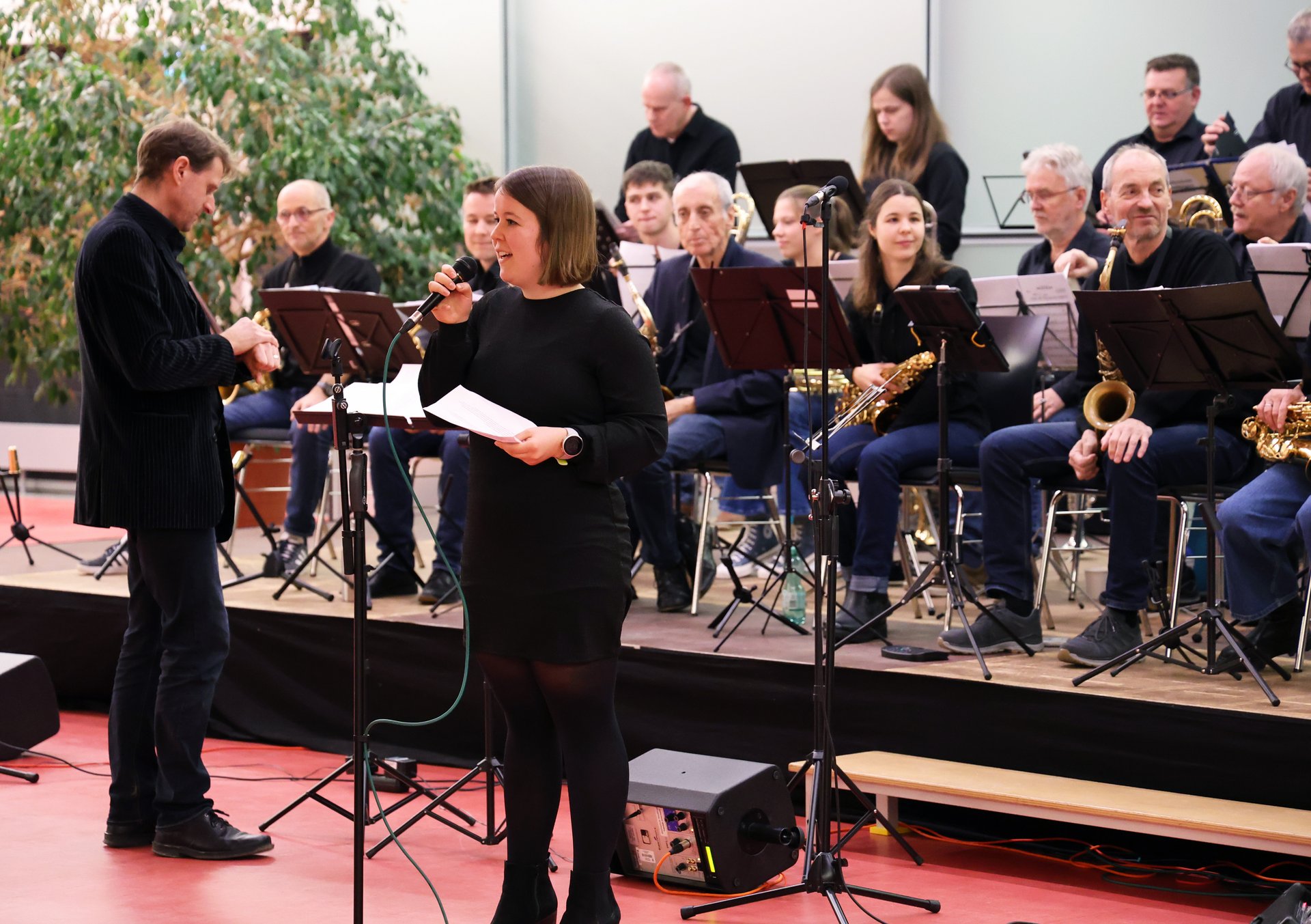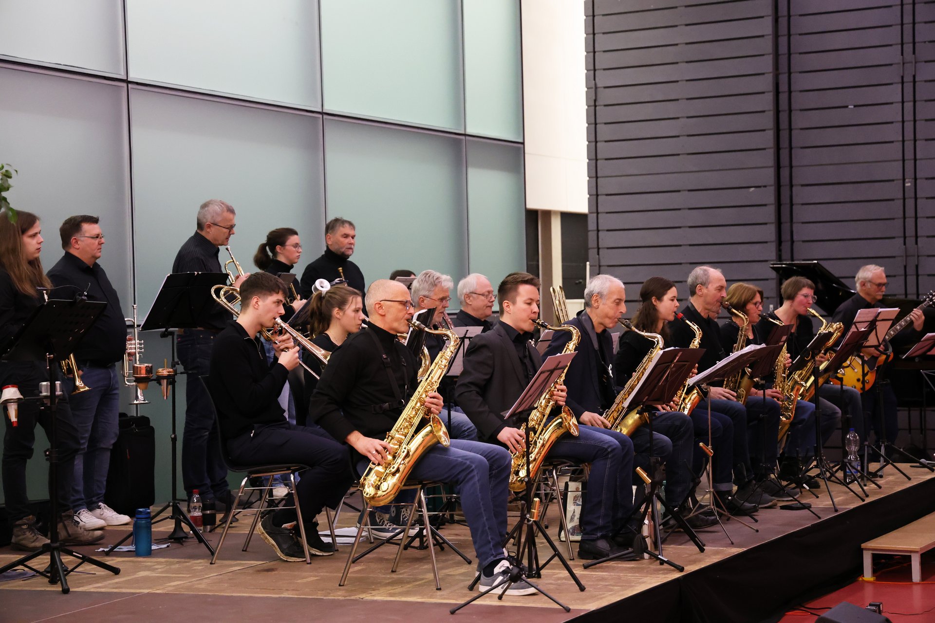 Mit einer vielseitigen Auswahl an Liedern entführten die rund 30 Musizierenden beim Weihnachtskonzert das Publikum in eine Welt des Swing und Blues. Lieder wie „Skyfall“, „Don’t Know Why“ oder „Blue Skies“ begeisterten das Publikum. Vier talentierte Sängerinnen begleiteten zudem einzelne Stücke.