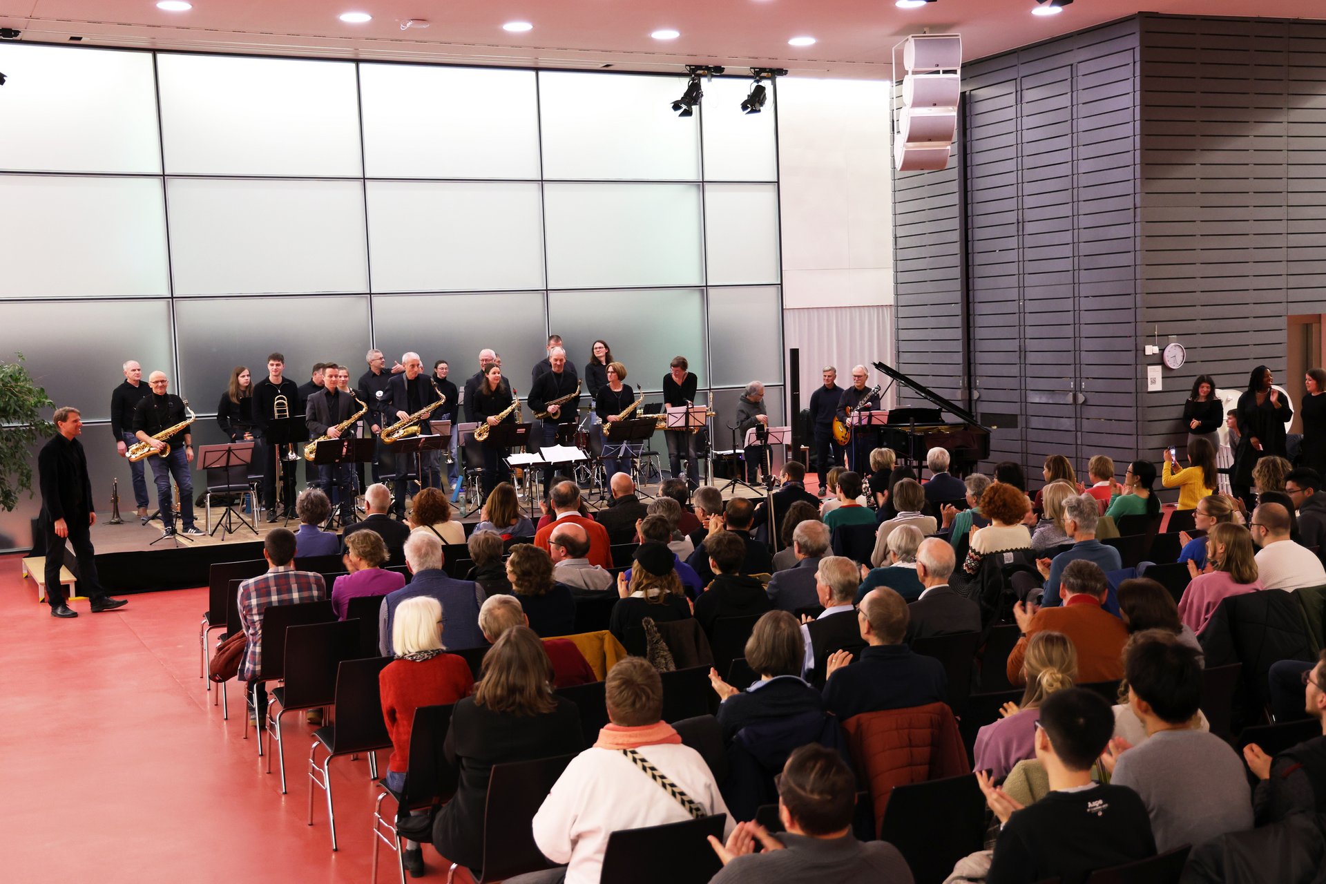 Ein tosender Applaus am Konzertende, drückte die große Begeisterung der Zuhörer:innen aus. Auch der Big Band-Leiter Benjamin Himpel, zeigte sich hocherfreut über das gelungene Konzert: „Wir sind stolz darauf, wie sich die Big Band entwickelt und heute Abend von ihrer besten Seite präsentiert hat.“