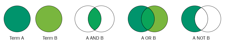 The Boolean operators (AND, OR or NOT) enable you to combine your search terms. In certain German databases, these would be UND, ODER or NICHT.