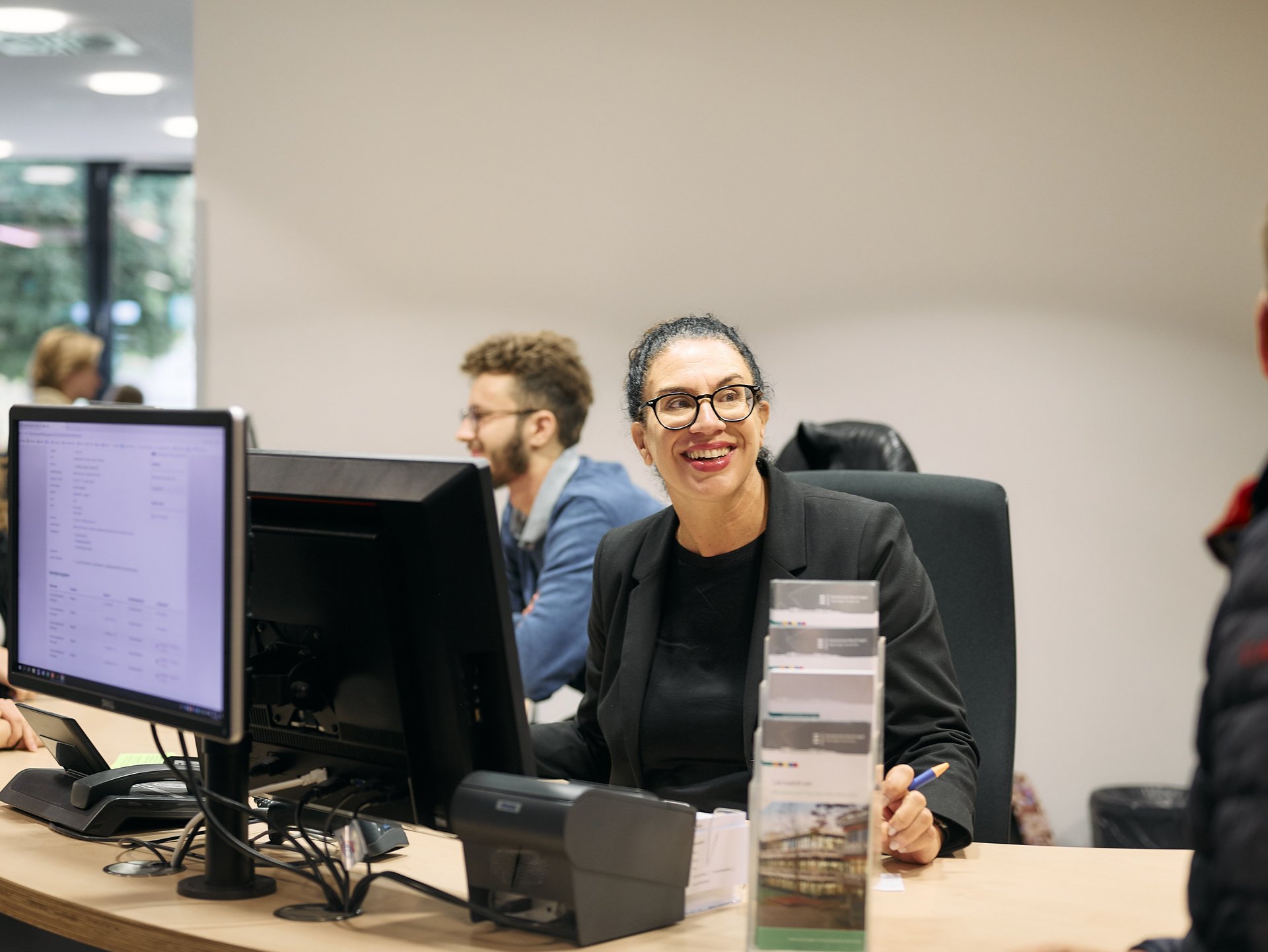 The Service Desk is the central point of contact in the Learning Centre. Here you can get information about the services of the University Library and the Computer and Media Centre. For your more complex research questions, book a research consultation.