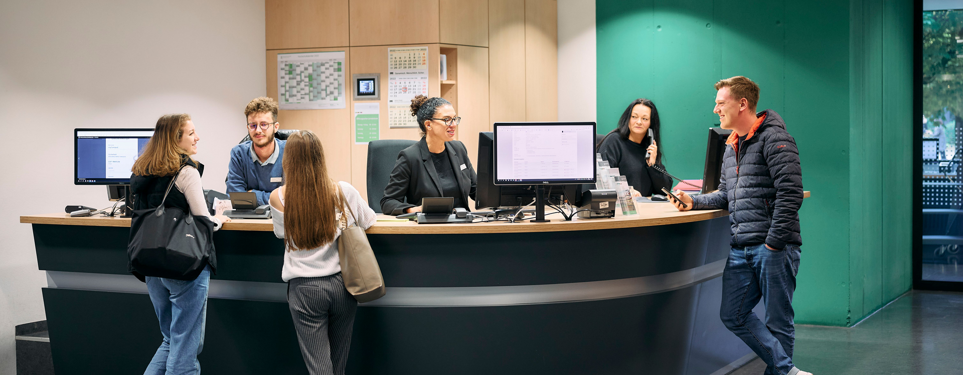 Das Lernzentrum ist die zentrale Anlaufstelle für alles rund um das Thema Lernen & Arbeiten. Hier finden Sie die Hochschulbibliothek und den IT-Support, Fachliteratur und Lernplätze, zahlreiche Angebote zum wissenschaftlichen Arbeiten und einen Café-Bereich für die kleine Pause zwischendurch.