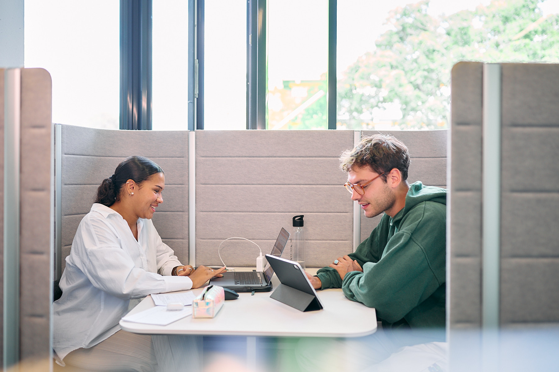 Das Lernzentrum bietet freundliche Räumlichkeiten für Einzelpersonen und Gruppen zum Lernen, Arbeiten und Pausieren. Geräte zum Drucken, Kopieren und Scannen stehen für Sie bereit. Außerdem lotsen wir Sie durch die IT-Services der Hochschule.