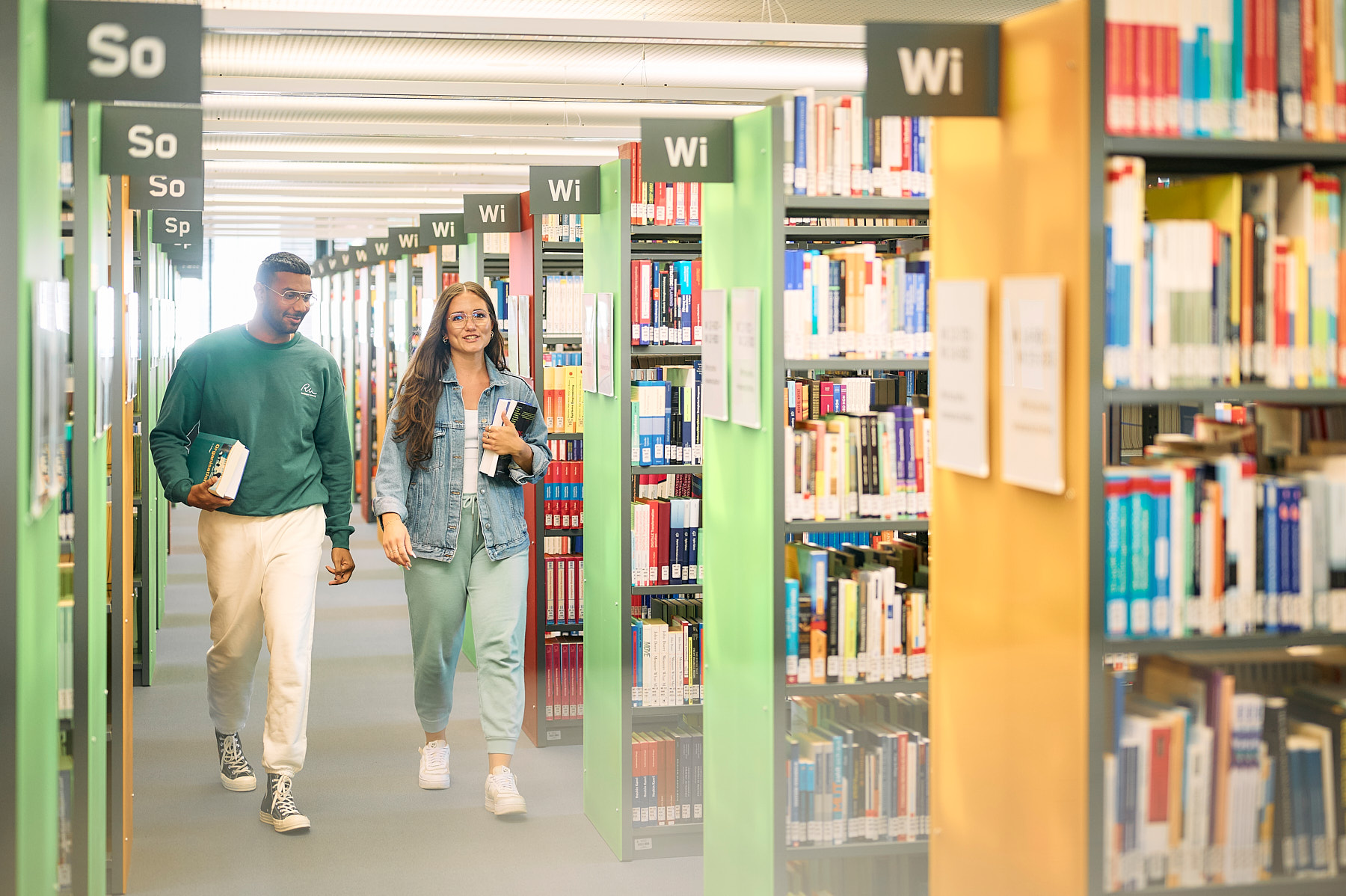 Sie finden uns im Herzen des Campus in Gebäude 3. Schauen Sie vorbei! Unser Team vor Ort unterstützt Sie gerne bei allen Fragen rund um Ausleihe, Recherche, Kontoaktivierung und vielem mehr.