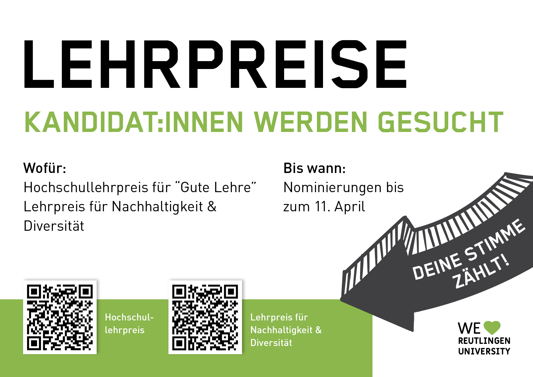 Nachhaltigkeit und Diversität sind wichtige Querschnittsaufgaben – auch an unserer Hochschule. In unseren Lehrveranstaltungen vermitteln wir notwendiges Fachwissen genauso wie überfachliche Kompetenzen. Das Engagement der Professorinnen und Professoren möchten wir würdigen, und gleichzeitig einen Anreiz setzen, sich mit diesen Themen auseinanderzusetzen, innovative Ansätze sichtbar machen.